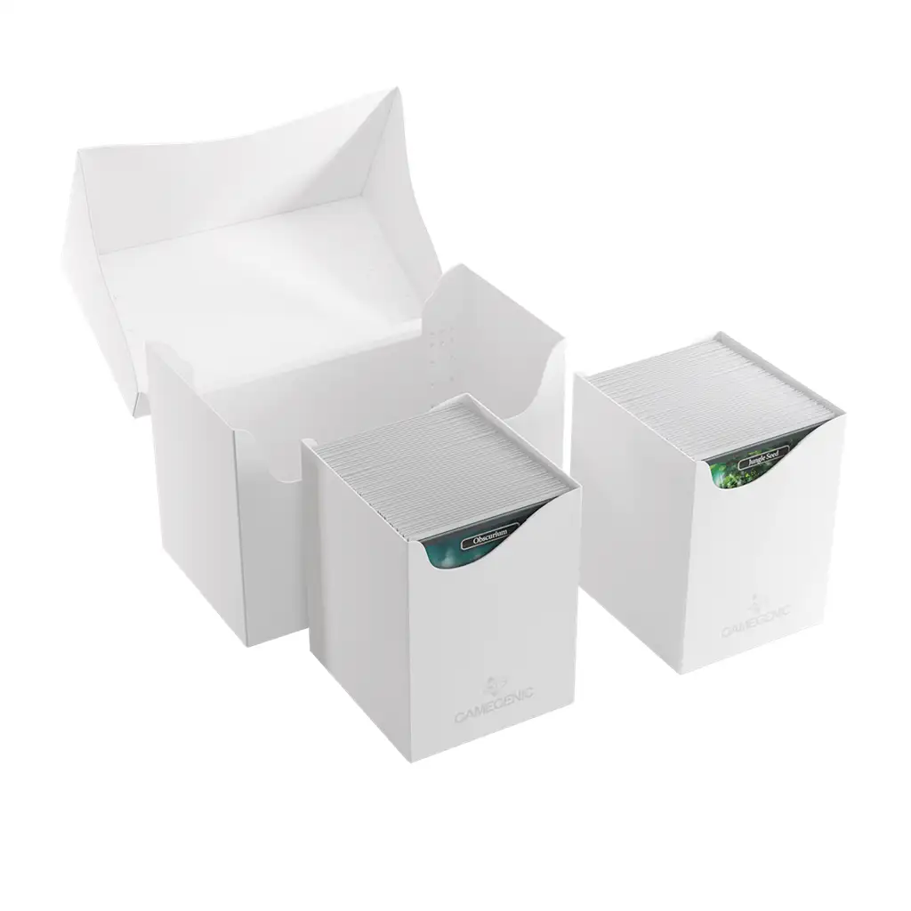 Een stevige box om twee complete decks van maximaal 100 dubbel gesleevede kaarten in te bewaren. Een functionele en betaalbare box om je kaarten op te bergen. De 2 binnenste deckhouders zijn verwijderbaar en kunnen elk tot 100 dubbel gesleevede kaarten bevatten. De innovatieve Cobra Neck technologie zorgt ervoor dat de deksel tot 180° open kan zodat je makkelijk bij je kaarten kunt.