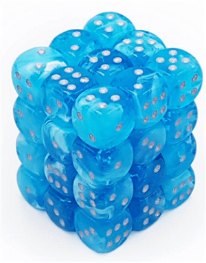 27966 Chessex Signature 12mm d6 with pips Dice Blocks (36 Dice) – Luminary Sky/silver