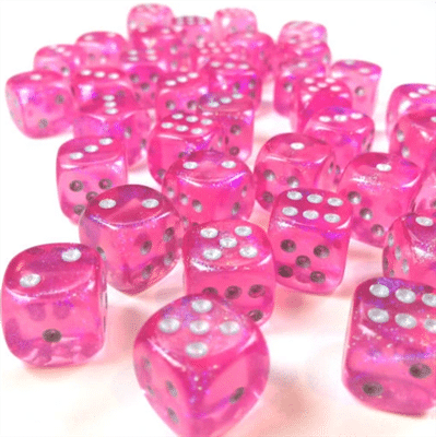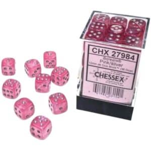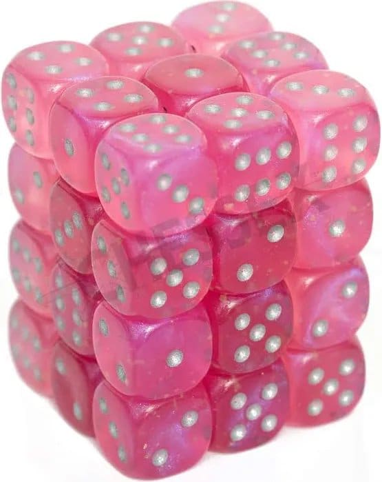 27984 Chessex Borealis 12mm d6 Pink/silver Luminary Dice Block (36 stuks)