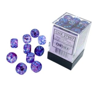 Chessex 12mm D6 dobbelstenen – Nebula TM Nocturnal/blue Luminary (36 stuks) 27957