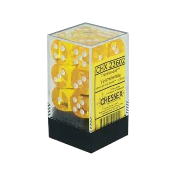 Chessex Translucent 16mm D6 Dobbelstenen Yellow w/white (12 stuks)