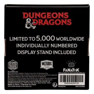 Throughout its 50 years, there have been many monsters that have graced our tabletops, but none more iconic than the ones depicted on this medallion. Shaped in the style of a D20, each coloured section shows a different monster, including Beholder, Owlbear, Gelatinous Cube, and more. Limited to 5,000 worldwide, each medallion is individually numbered to the reverse and comes with a display stand in its presentation box.- Officially licensed – Limited to 5,000 – Individually numbered on reverse – 74 x 84mm