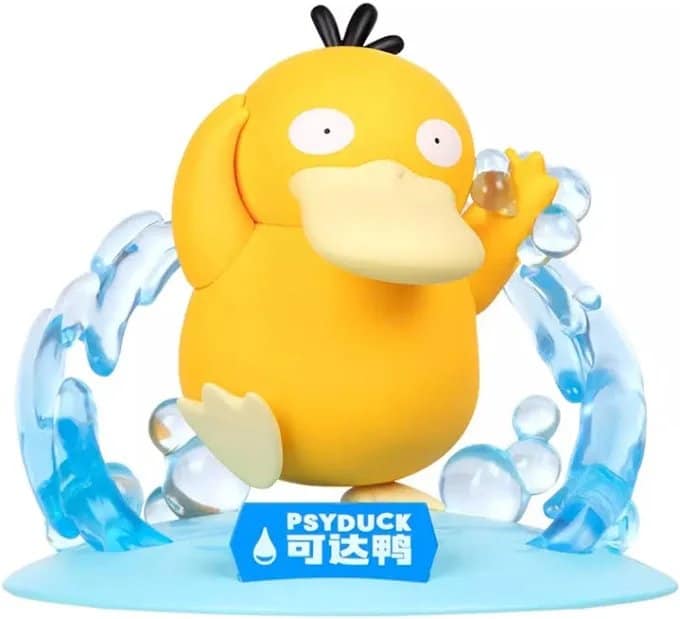 Psyduck is een geliefde Pokémon van het type Water, bekend om zijn onhandige karakter en voortdurend verwarde uitdrukking. In het Pokémon-universum wordt Psyduck vaak gezien met zijn hoofd omhoog vanwege frequente hoofdpijn, wat kan leiden tot krachtige psychische aanvallen wanneer deze te overweldigend worden. Dit contrast tussen zijn humoristische uiterlijk en verborgen potentieel maakt hem tot een memorabel en mysterieus personage. Psyduck is een trouwe metgezel voor veel trainers en brengt een vleugje humor in elk avontuur.