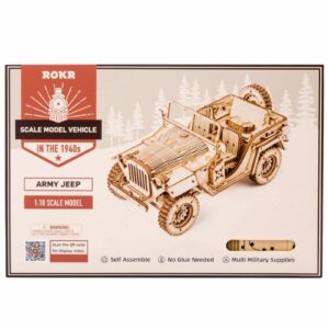 Wie kent niet de Willys MB Jeep die zo vlak bij onze Belgische stranden in Europa kwam tijdens de landingen in de tweede Wereldoorlog. Dit legendarische oorlogsvoertuig hebben wij gegoten in een houten bouwpakket voor volwassenen. Met dit miniatuur bouwpakket ga je hoge ogen scoren, want de details zijn fenomenaal en je vindt alles terug wat hij in werkelijkheid ook heeft, zoals een reservewiel, een jerrycan en zelfs een bijl. Lees snel verder voor meer details.