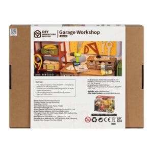 Robotime overtreft zichzelf met deze modelbouw hit! Wat een geweldig idee om van een garage een miniatuurhuisje te maken. En wat voor een gedetailleerde garage. In deze werkplaats vind je zo ongeveer alles wat je nodig hebt om een auto te repareren. Om te beginnen heb je gereedschap nodig, zoals moersleutels, schroevendraaier en hamer. Dat hangt allemaal op het gereedschapsbord. Je accuboormachine staat op je werkbank waarvan de laatjes echt open kunnen. Een rolkar met tools staat klaar om banden te monteren. Omdat je lekkende oliekannen hebt, staat er een bord met ‘Pas op, slipgevaar!’.