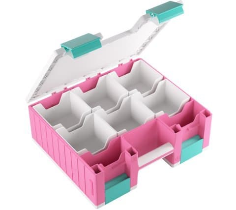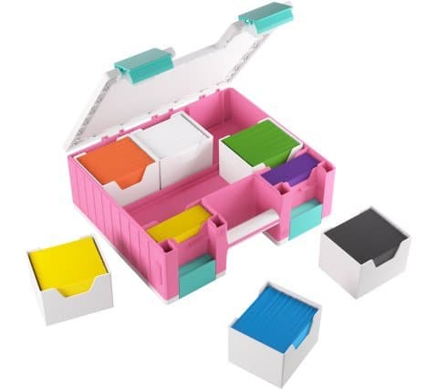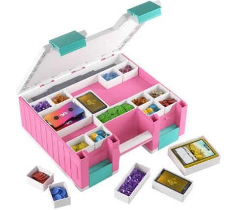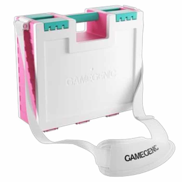 De koffer bestaat uit twee zijdes, de kaartzijde en de accessoirezijde, die afzonderlijk van elkaar te openen zijn. De kaartzijde bevat zes verwijderbare kaarthouders, ieder goed voor 100 double-sleeved kaarten in extra dikke Gamegenic sleeves. In totaal kan je 600 double-sleeved of 800 single-sleeved kaarten kwijt in de kaartzijde. De accessoire zijde komt inclusief 19 verwijderbare bakjes in vijf verschilende maten. Perfect voor dobbelstenen, tokens, fiches en andere accessoires. De bakjes zijn verwisselbaar met de Gamegenic Token Silo en de Token Silo Cards Add-on.