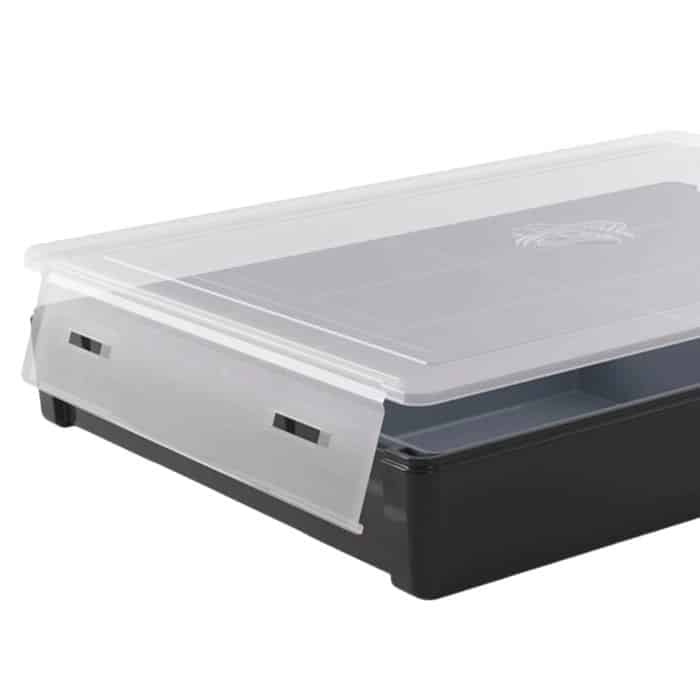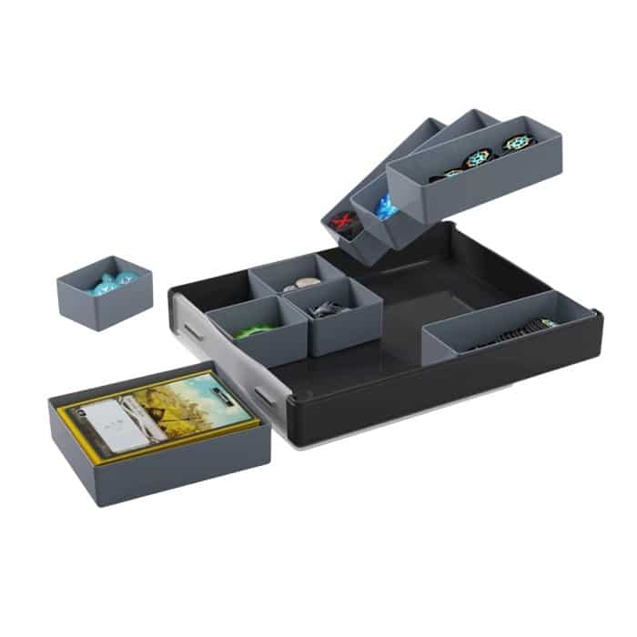 - Het deksel klikt vast aan de onderkant en bespaart kostbare ruimte aan de speeltafel