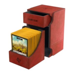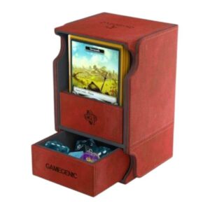 De uitklapbare Watchtower combineert deckbox, accessoirelade en kaarthouder in één elegante doos. De kaarthouder kan maximaal 100 kaarten met dubbele sleeves bevatten, beschermd door een zachte voering van microvezel aan de binnenkant. De accessoirelade is perfect voor het bewaren van dobbelstenen, tokens en andere kleine voorwerpen.