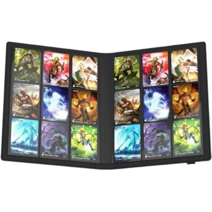 - Elke pagina heeft aan beide kanten 9 pockets met ruimte voor standaard kaarten.