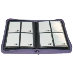 De Vivid 4-pocket PRO-binders met ritssluiting zijn ontworpen voor het verzamelen en organiseren van uw favoriete ruilkaarten. Elke map is voorzien van een gewatteerde kunstleren omslag met een bijpassende ritssluiting en treklipje. Nadat je de map hebt uitgepakt, vind je twintig pagina’s met vier vakken, geschikt voor standaard ruilkaarten, in zijladende vakken, waardoor je maximaal 160 kaarten kunt opbergen in Deck Protector-hoezen. De pagina’s zijn voorzien van een zwarte achterkant met lage wrijving, waardoor er een scheiding ontstaat tussen de voor- en achterzakken en de kaarten een klassiek ingelijste look krijgen.