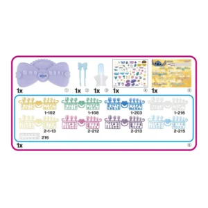 Deze complete kunst- en knutselset bevat 40 Aquabeads nagels met decoraties in 8 kleuren, decoratiedeel, werktafel, plastic tweer, waterapplicator met borstel, stickers, designblad en instructies. Design sheet bevat nagelontwerpen met stiksel, die kunnen worden gemaakt door assembling, inclusief Aquabeads nagels en decoraties met kraanwater