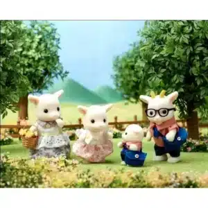 De familie geit bevat vier figuren: de postbode vader geit Billy, moeder Nancy, dochter Mandy en haar kleine zusje Jenny. De baby en vader dragen bijpassende outfits. De armen en benen van de figuren kunnen worden bewogen om ze in verschillende poses te zetten. Stimuleert fantasierijk rollenspel voor kinderen. Geschikt voor kinderen van drie jaar en ouder.