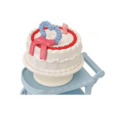 Verplaats de taart van twee lagen op de kar en versier deze met de decoraties.