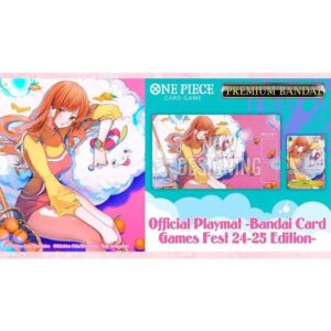 Bereid je voor om in stijl te spelen met deze officiële One Piece TCG speelmat. Deze speciale editie is uitgebracht ter gelegenheid van het Bandai Card Games Fest 2024-2025 en toont een unieke illustratie van Nami en Zeus. De speelmat wordt geleverd met een bijpassende promokaart met hetzelfde artwork, een echte must-have voor fans en verzamelaars. Officiele speelmat voor One Piece, limited Edition
