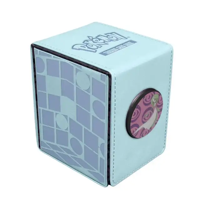 Kunstleren deckbox van Pokémon met verwisselbare Pokémon badges van Gardevoir, Mr. Rime, Wobbuffet en Reuniclus. De voorkant van de deckbox is magnetisch waardoor je de badges met gemak kan verwisselen en jouw favoriet kan kiezen!