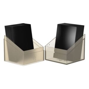 De Boulder is een compacte deckbox en is zeer degelijk uitgevoerd met een zachte afwerking. Door de gelijke vorm van onderkant en deksel zijn beide te gebruiken als kaarthouder. Per Boulder passen er ruim 100 dubbel-gesleevede kaarten of ruim 120 enkel-gesleevede kaarten in.