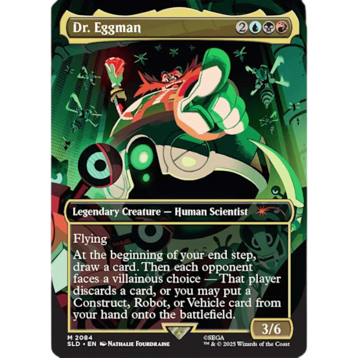 Heroes. Villains. One drop to settle the score. Seven brand-new cards bring Sonic, Shadow, Dr. Eggman, and the crew to Magic: The Gathering for the first time. From the speed of Sonic to the nefarious chaos of Dr. Eggman, this drop delivers classic characters, explosive plays, and legendary speed. And once it’s gone—it’s gone. Art by Evan Stanley, John Thacker, Tracy Yardley, Nathalie Fourdraine, and Tyler Walpole