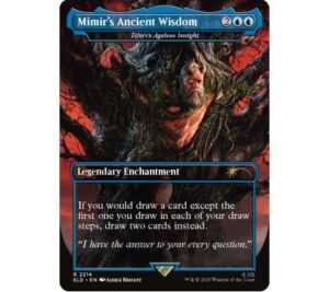 – 1 borderless alternate art Teferi’s Ageless Insight as “Mimir’s Ancient Wisdom” (Reversible)
