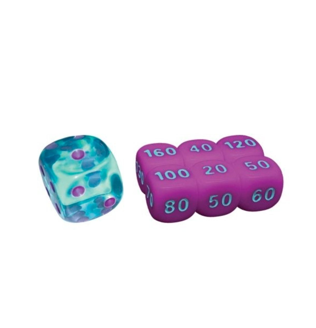 – 6 kantige dobbelstenen en 1 competitie-legale munt-flip dobbelsteen