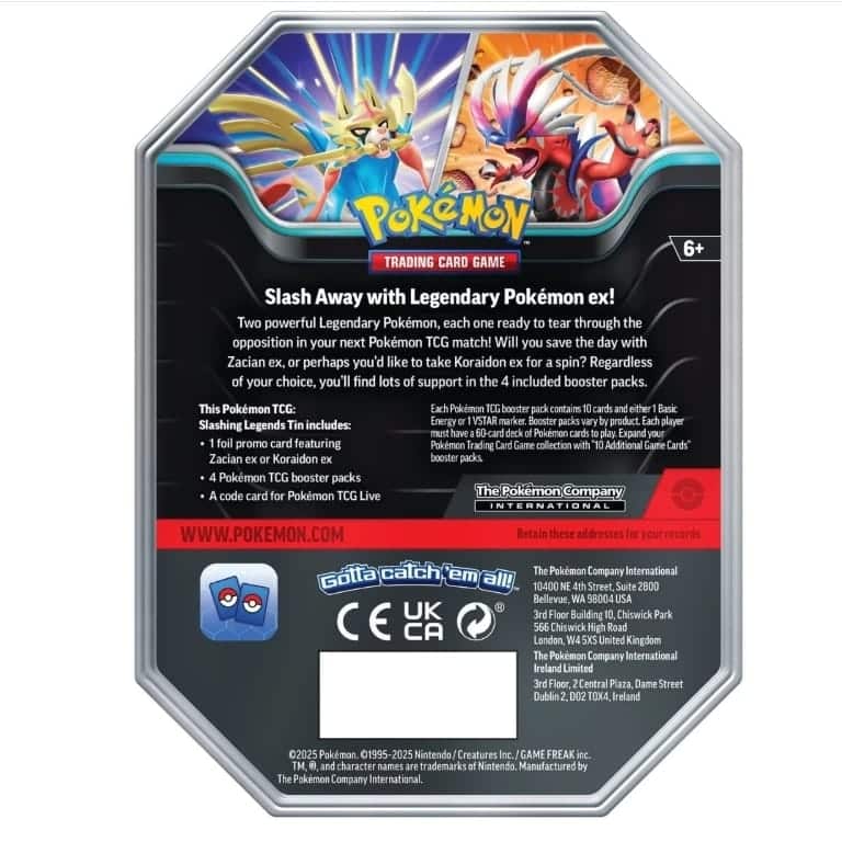 De Pokémon TCG: Slashing Legends Tin bevat: