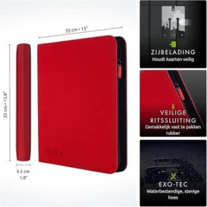 De Vault X Exo-Tec® 12-Pocket Zip Binder is een premium trading card binder voor verzamelaars die hun kaarten veilig, overzichtelijk en professioneel willen opslaan. Dankzij de stevige constructie, hoogwaardige materialen en slimme indeling blijft je collectie optimaal beschermd — thuis én onderweg.