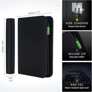 De binder is voorzien van side-loading pockets die kaarten stevig op hun plek houden en een heavy-duty ritssluiting die voorkomt dat de binder ongewenst opent. Het waterafstotende Exo-Tec® materiaal met gewatteerde covers beschermt je kaarten tegen stof, vocht en beschadigingen.